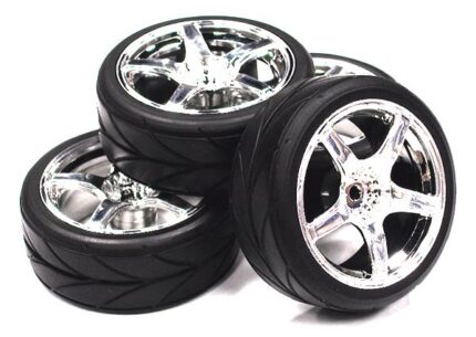 5 Spoke Complete Wheel & Tire Set (4) for 1/10 Touring Car W=26mm Offset 2.5mm